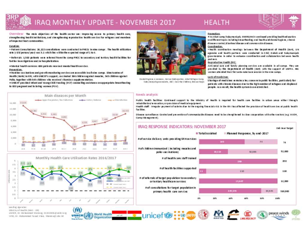 4. Iraq 3RP NOVEMBER 2017 Health Sector Dashboard Syrian Refugees