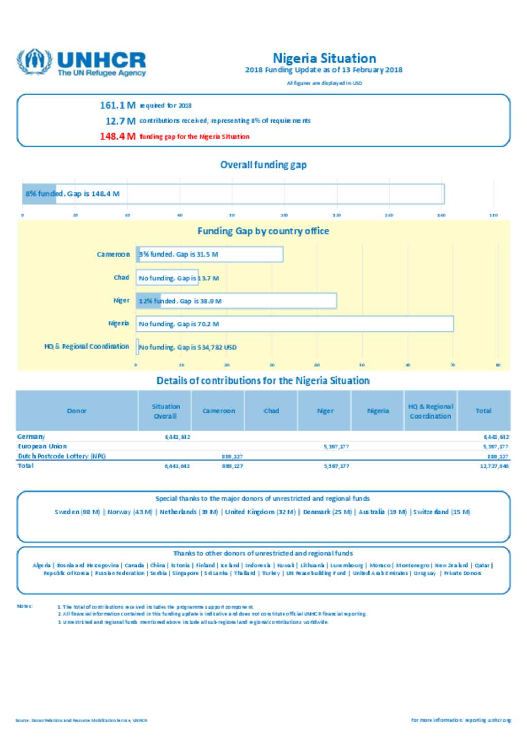 UNHCR Nigeria Situation Funding Update 13 February 2018
