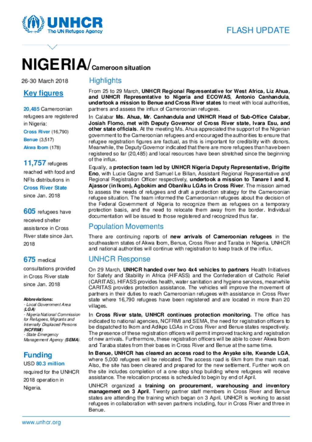 UNHCR NIGERIA: Cameroon situation - Flash Update 25 to 29 March