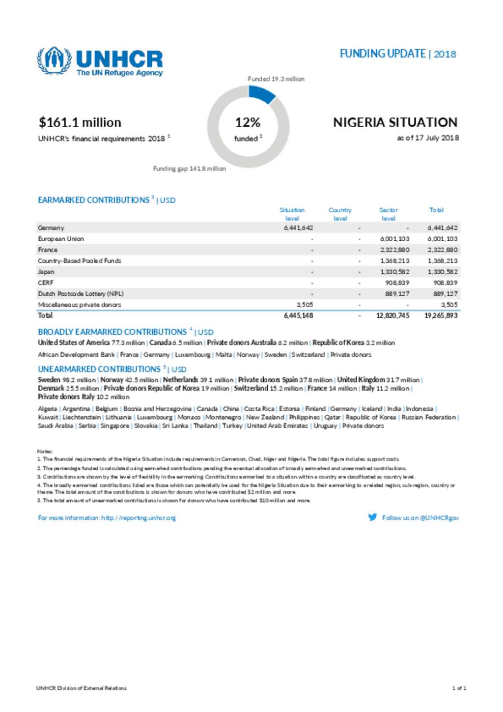 UNHCR Nigeria Situation Funding Update 17 July 2018