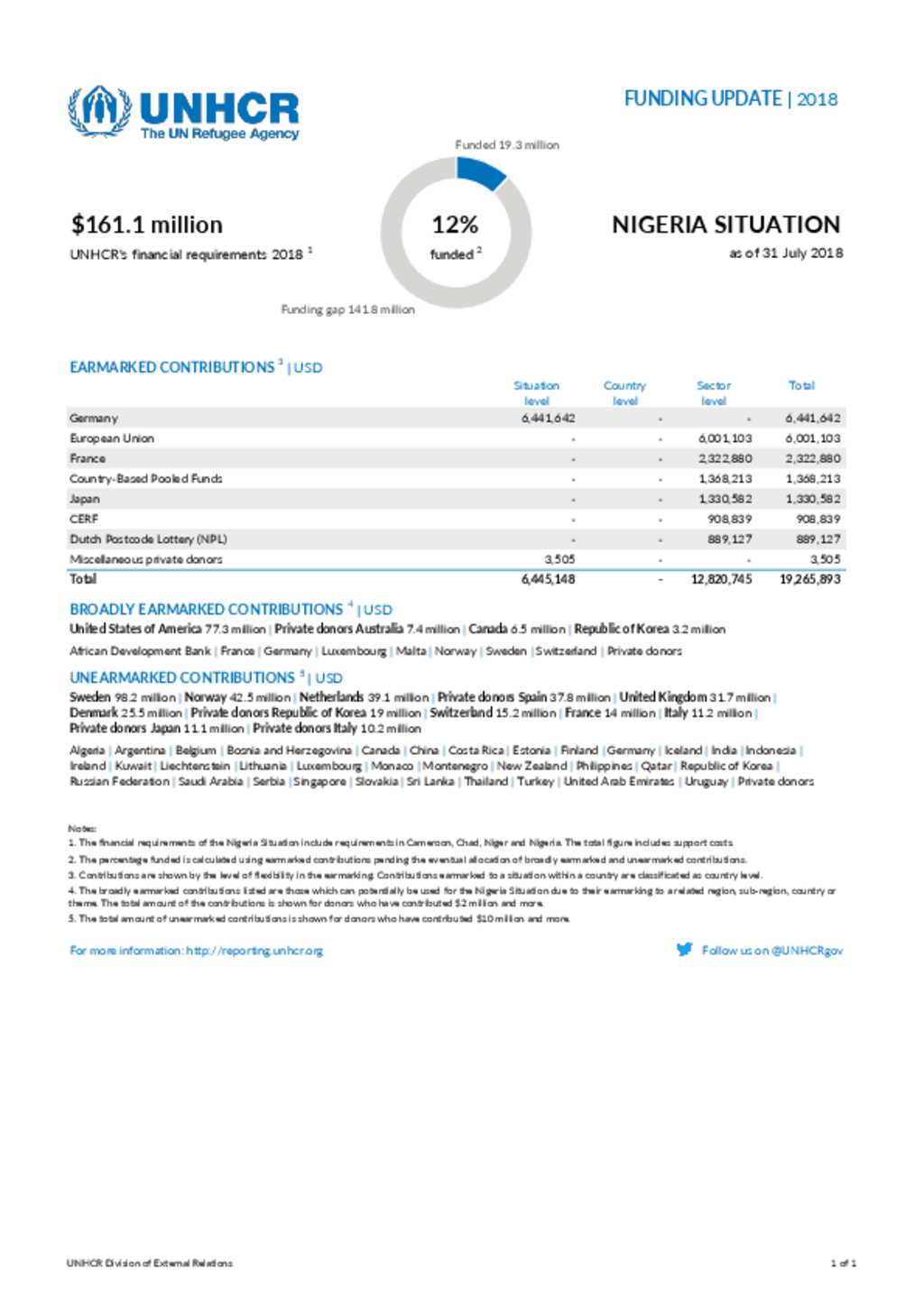 UNHCR Nigeria Situation Funding Update 31 July 2018