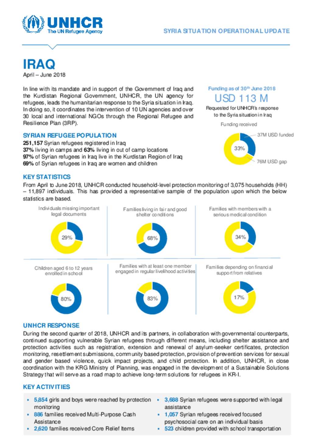 UNHCR Iraq operational update on Syria situation, Second quarter 2018