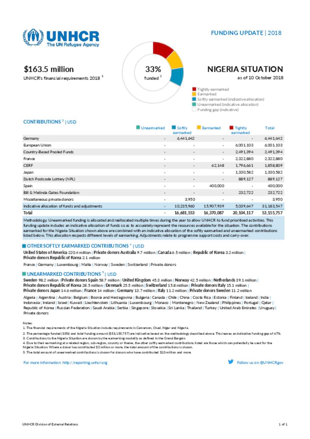UNHCR Nigeria Situation Funding Update 10 October 2018