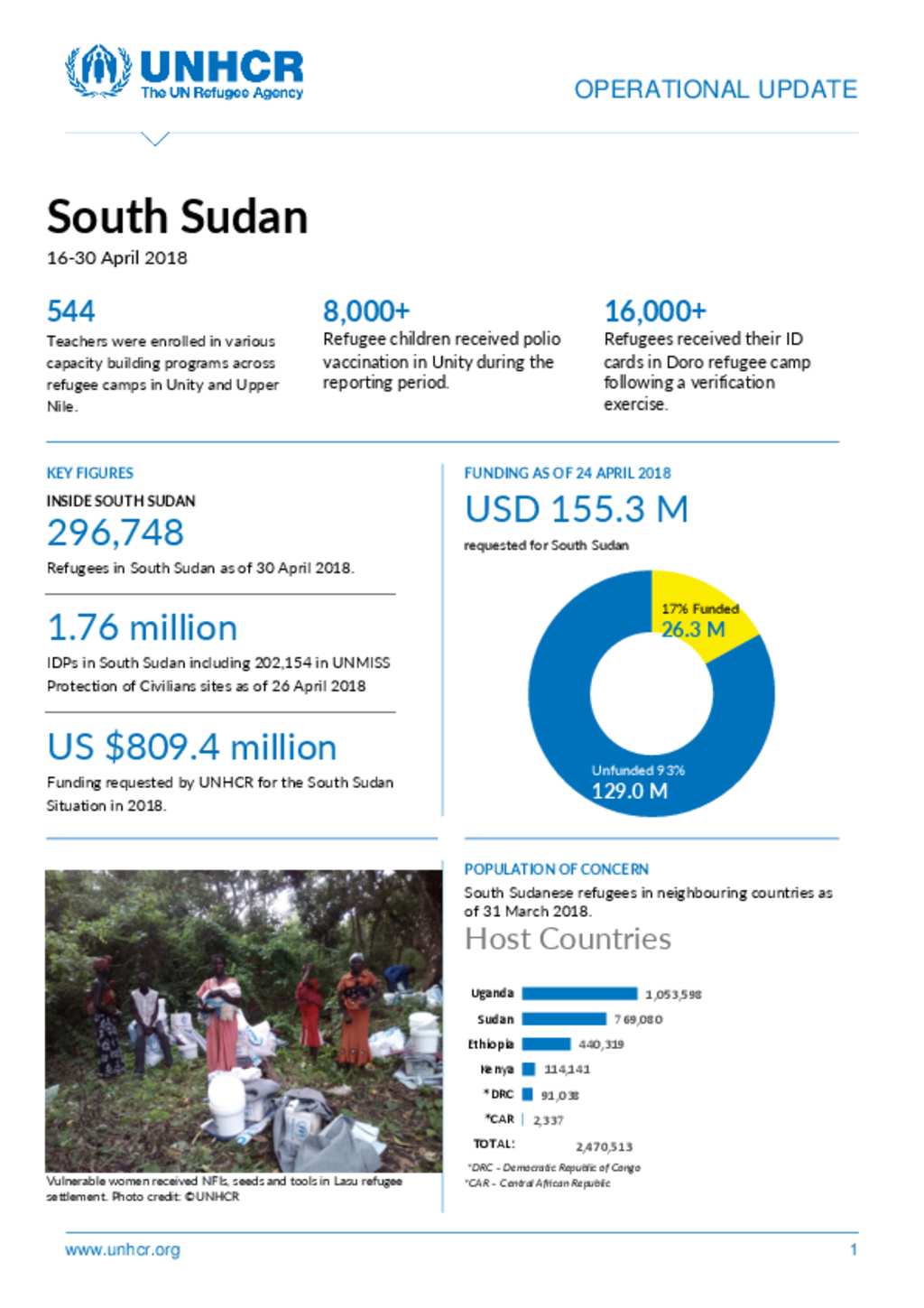 UNHCR South Sudan Operational Update No 08 - 16 - 30 April 2018