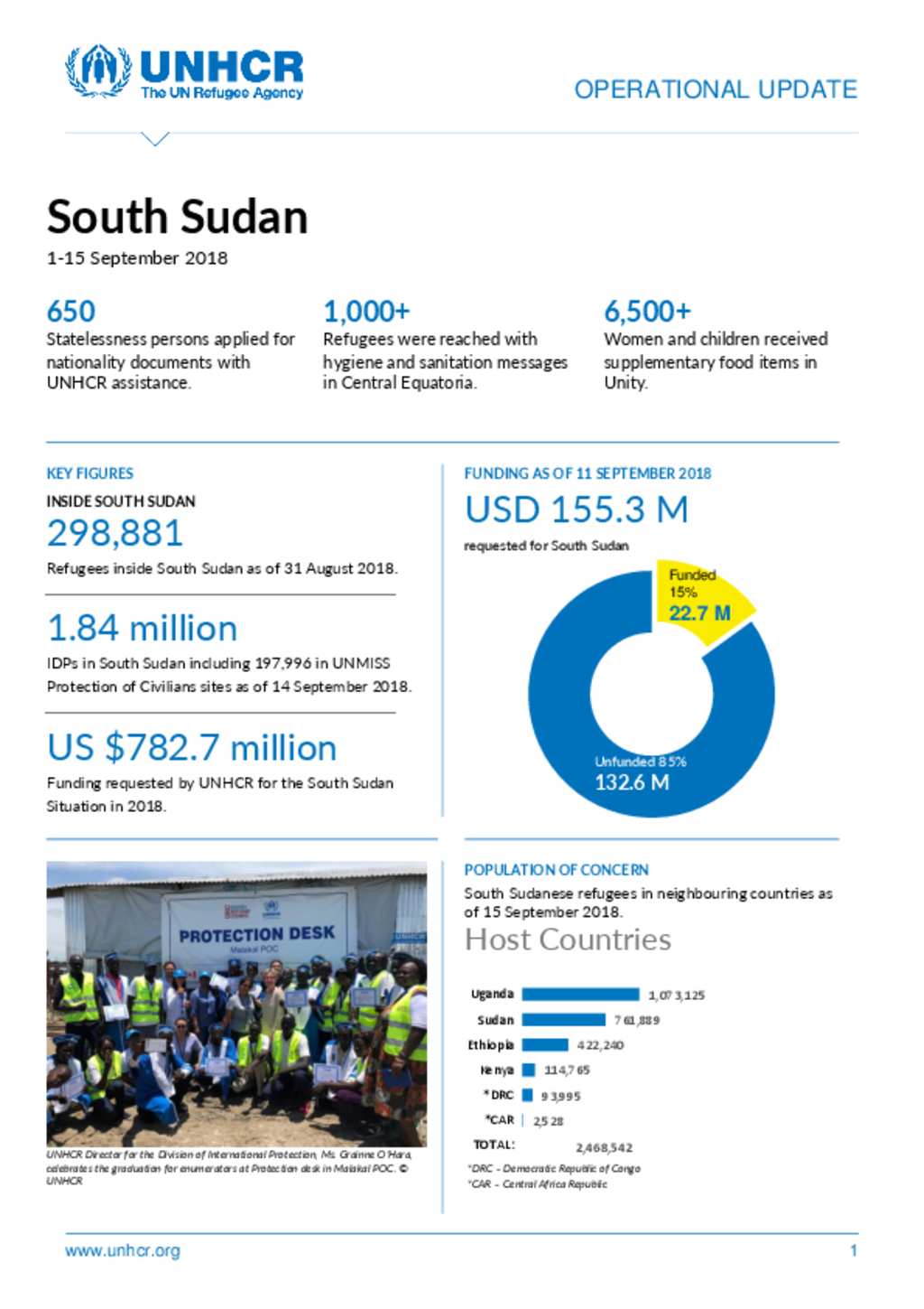 UNHCR South Sudan Operational Update No 17 - 1 - 15 September 2018