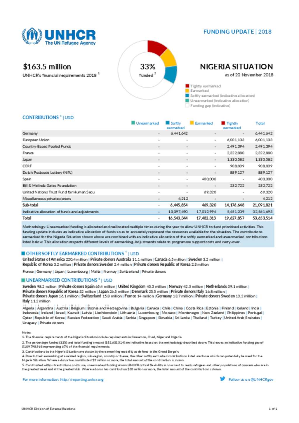 UNHCR Nigeria Situation Funding Update 20 November 2018