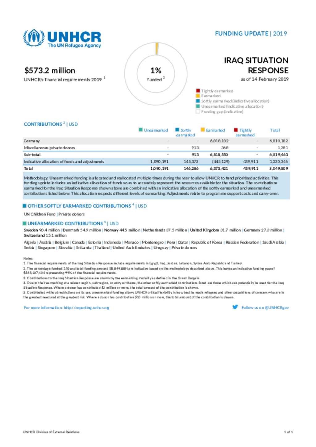 Iraq Situation Response Funding Update 14 February 2019