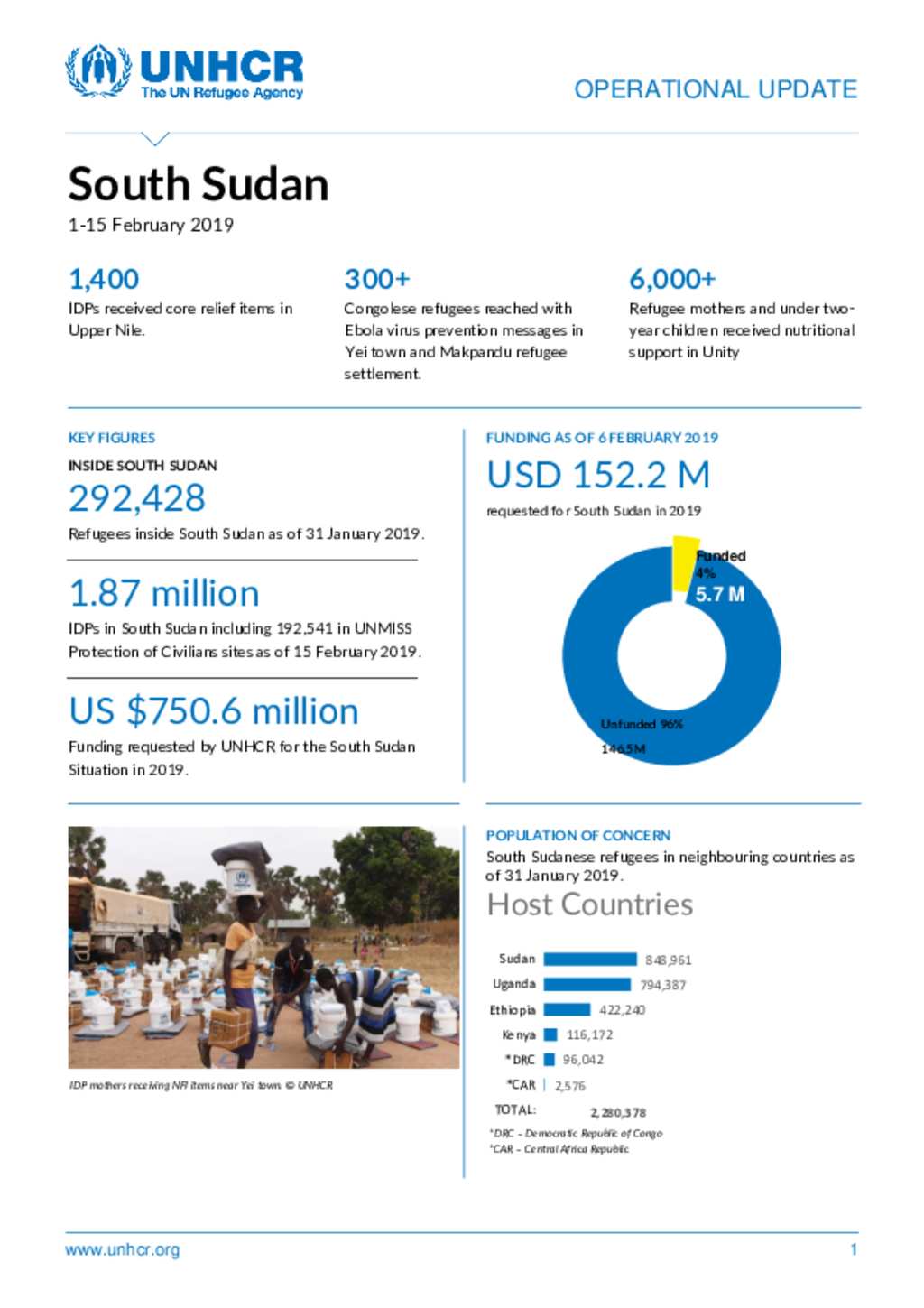 UNHCR South Sudan Operational Update No 03- 1- 15 February 2019