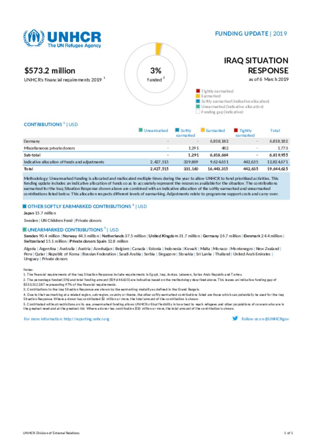 Iraq Situation Response Funding Update 06 March 2019