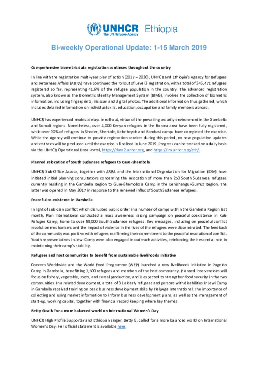 UNHCR Bi-weekly Operational update: 1-15 March 2019.
