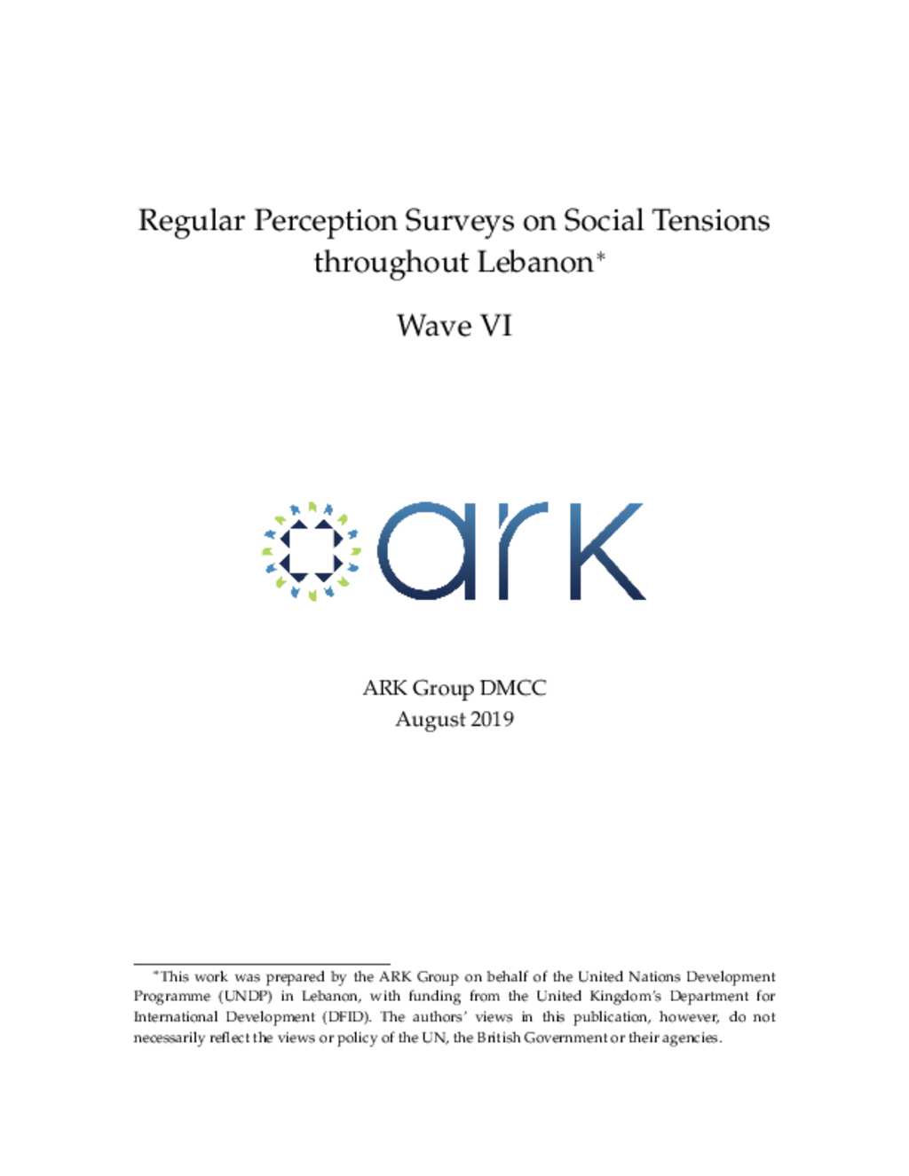 UNDP & ARK, Regular Perceptions Survey of Social Tensions Throughout Lebanon, Wave VI (August 2019)
