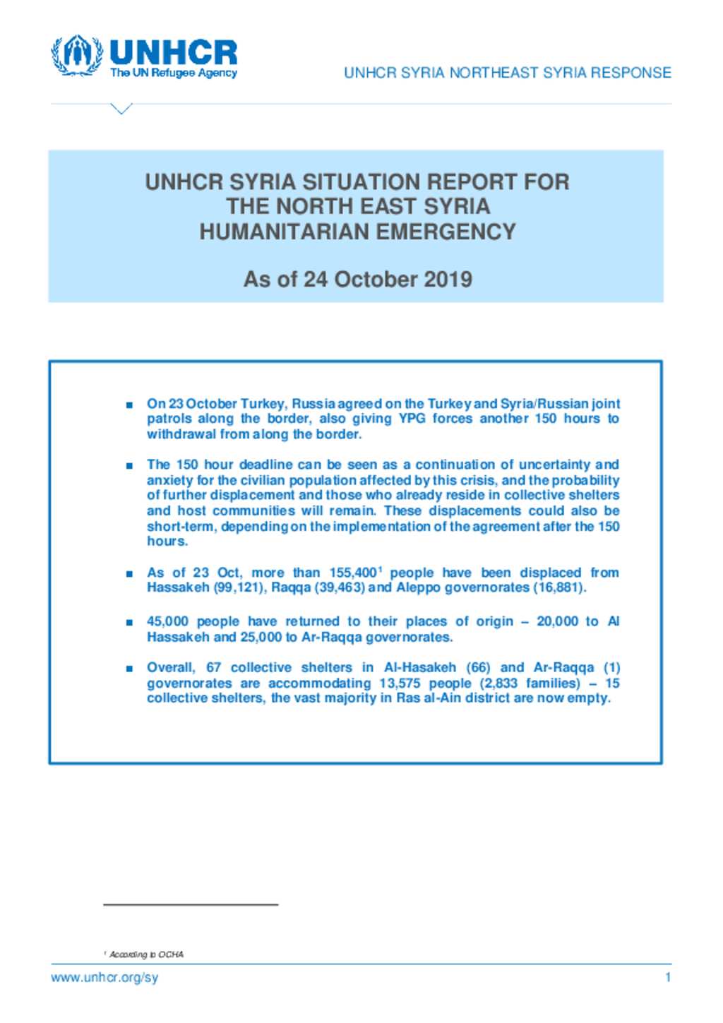 UNHCR Syria External Flash Update - North-East Syria - 24 October 2019