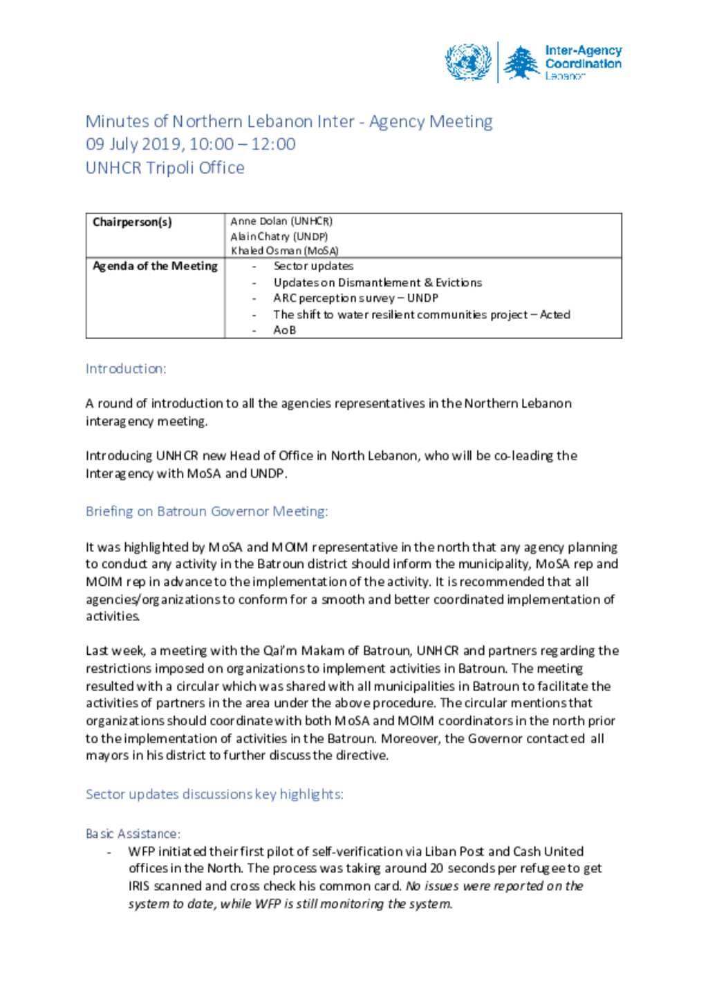 North Lebanon Inter Agency Meeting