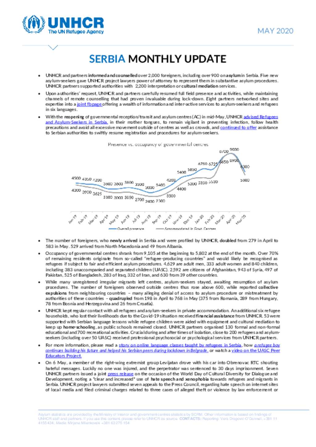 UNHCR Serbia Monthly Update May 2020