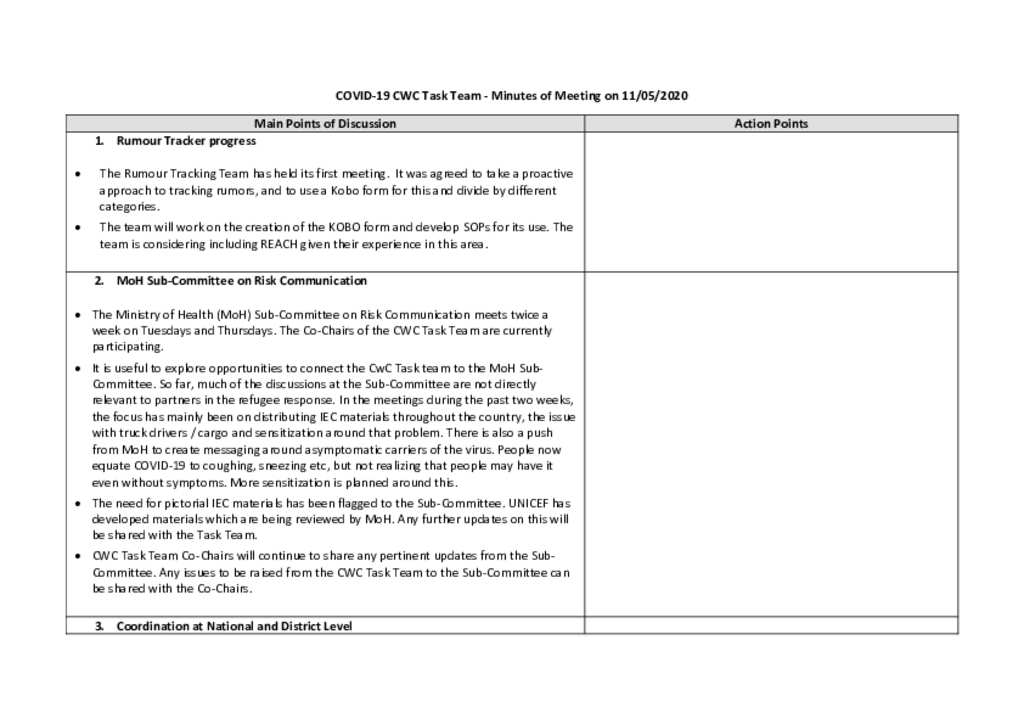 Uganda COVID-19: CWC Task Team – Minutes of Meeting on 11 May 2020