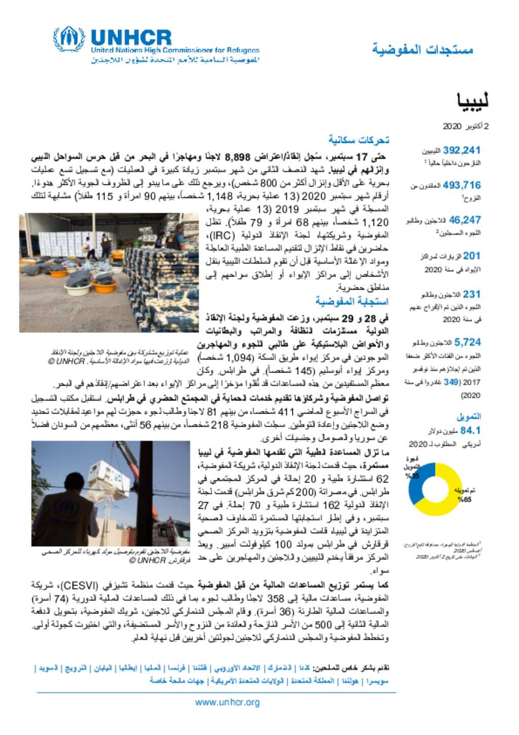 UNHCR Libya Update 2 October 2020 (Arabic)