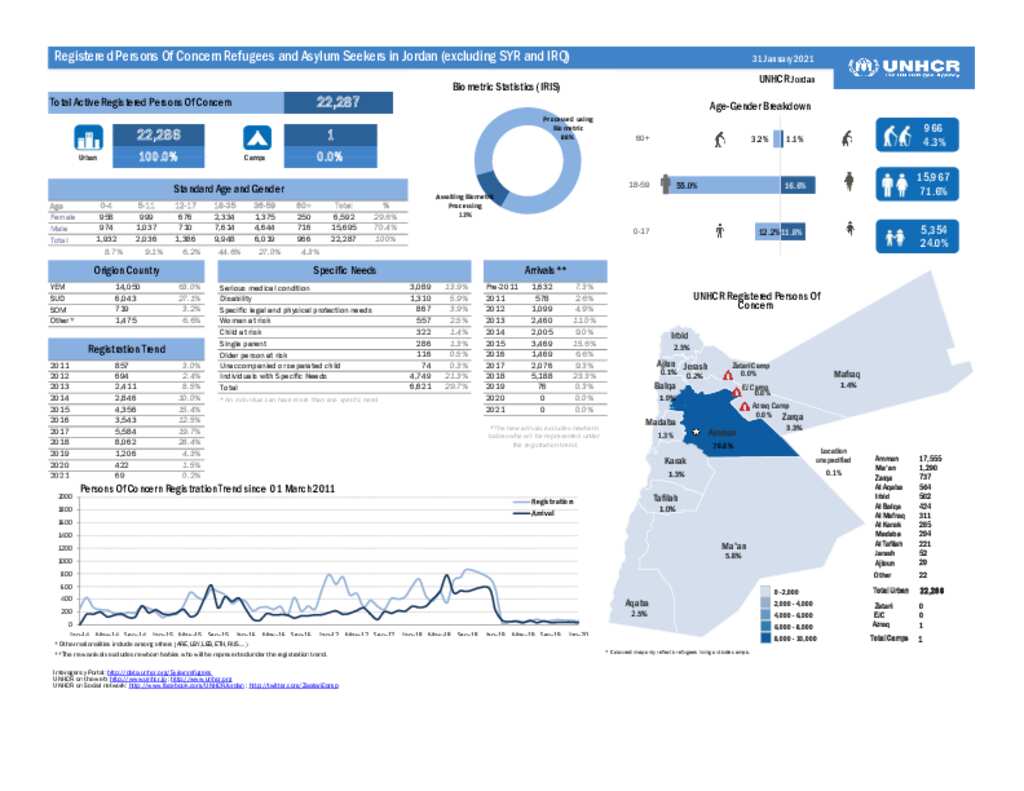 Jordan: Statistics for Registered Refugees of Other Nationalities (as of 31 January 2021)