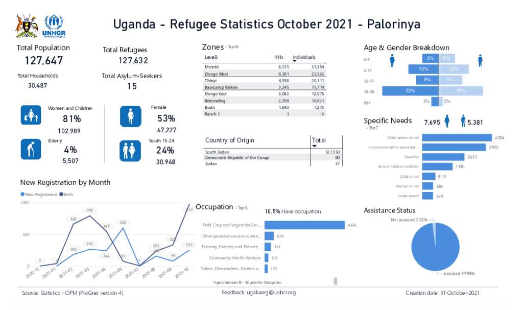 Uganda - Refugee Statistics October 2021 - Palorinya