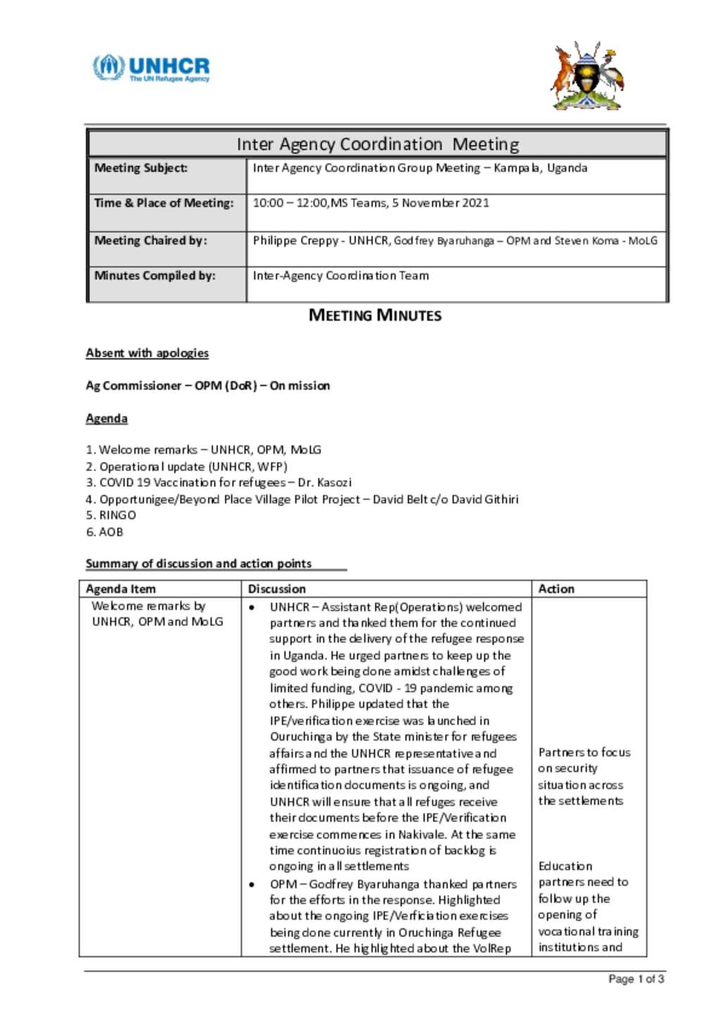 Uganda Inter-Agency Coordination Group meeting - November 2021