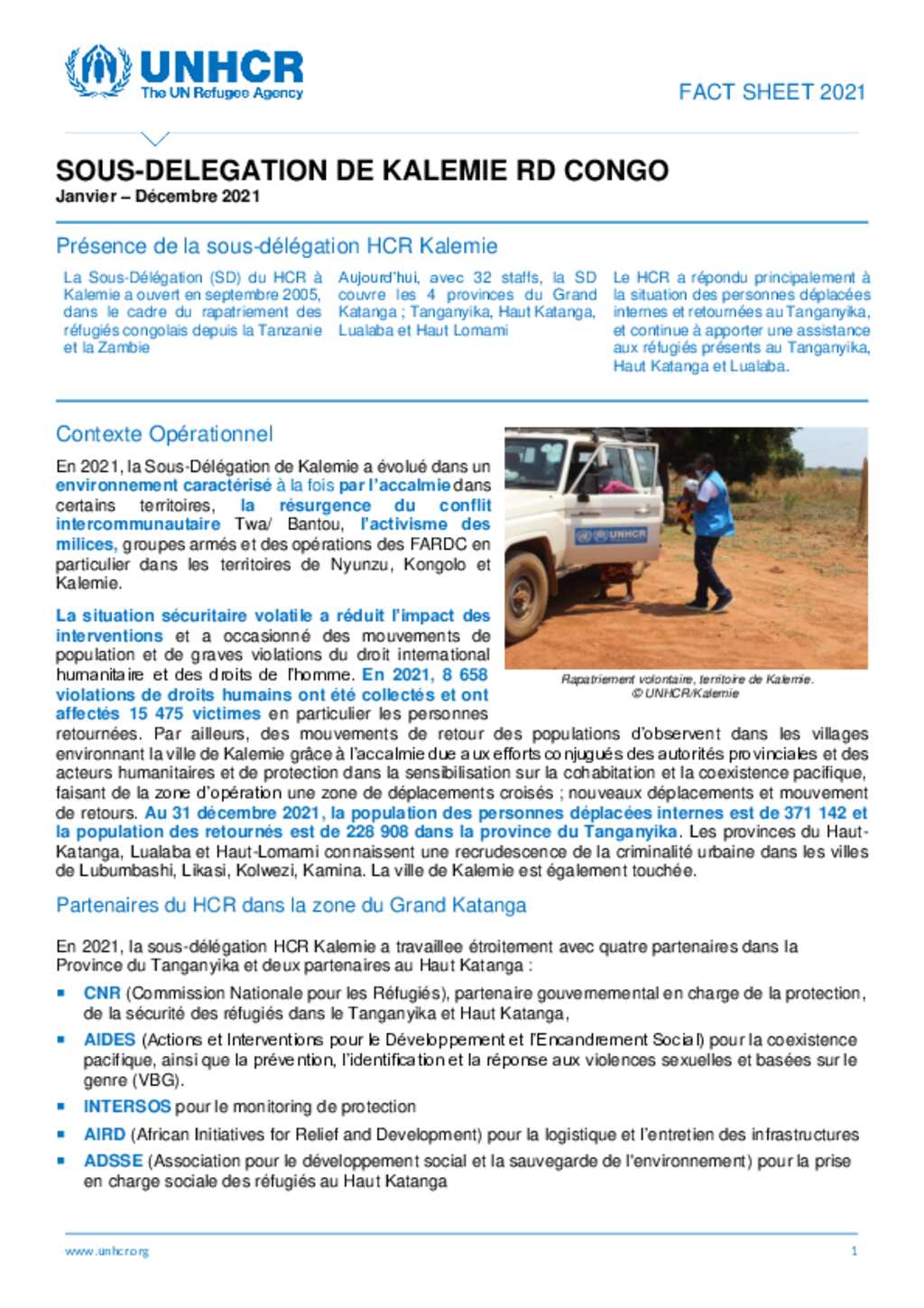 République Démocratique du Congo (Sous-délégation de Kalemie) - Factsheet de janvier à décembre 2021