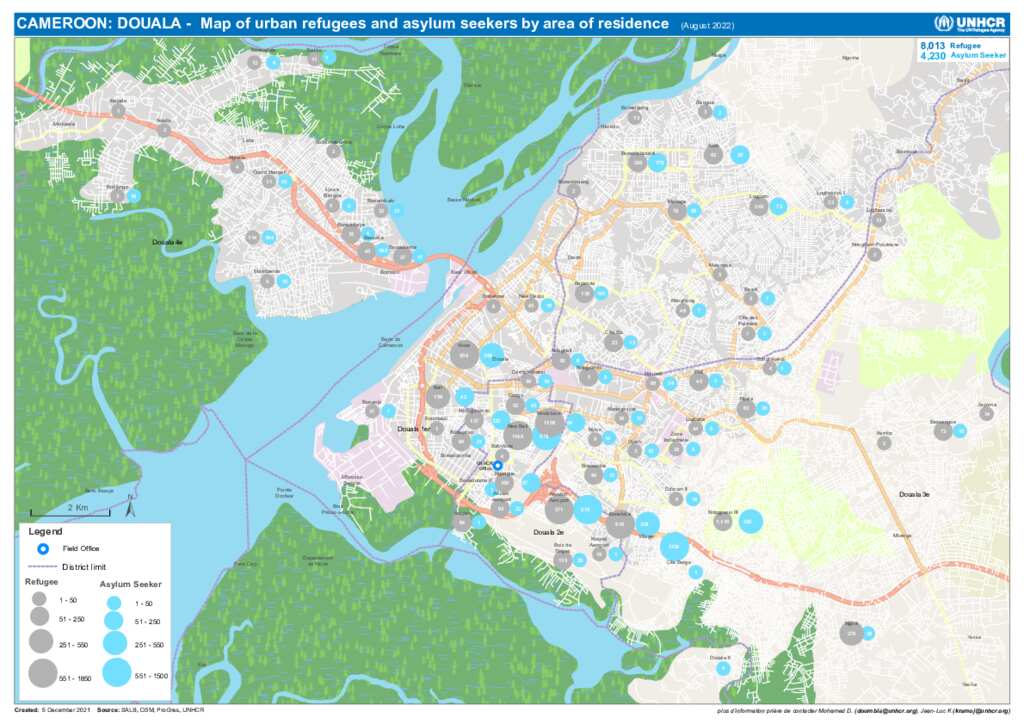 DOUALA - Map of urban refugees and asylum seekers by area of residence (August 2022)