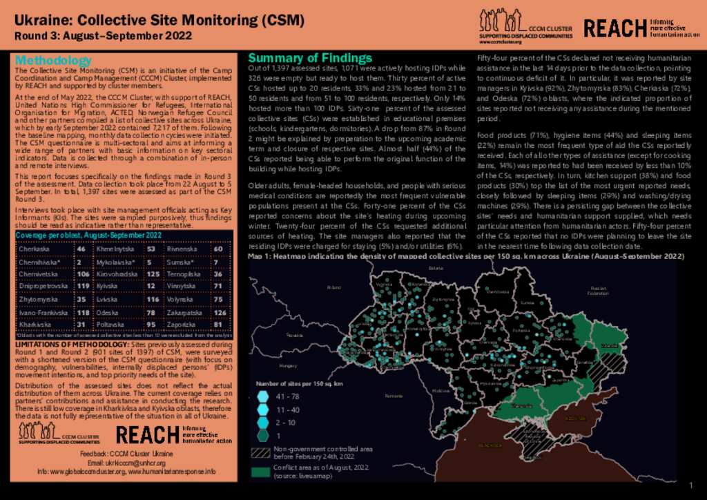 Ukraine: Collective Site Monitoring (CSM) survey: Round 3 (August -September 2022)