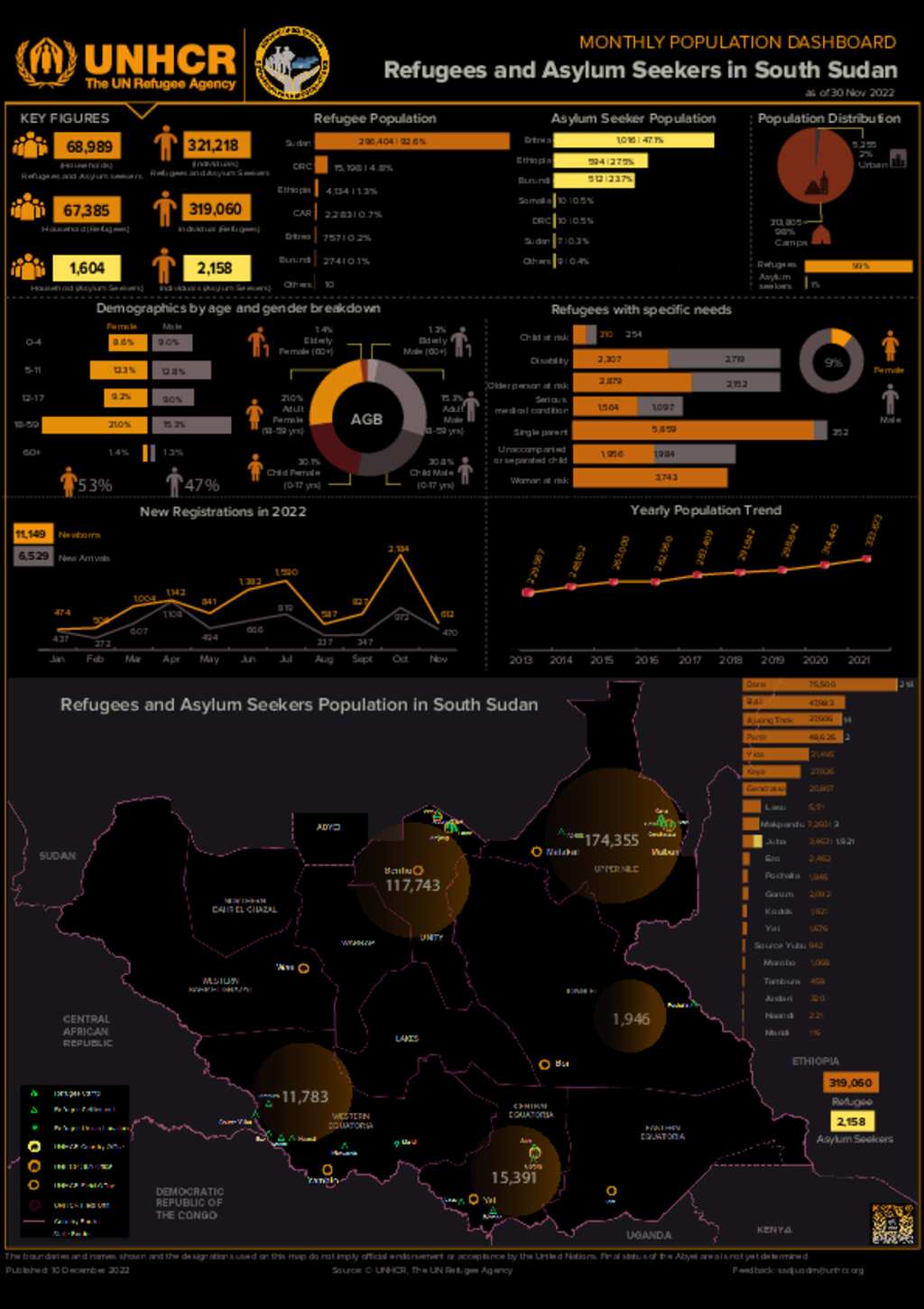 South Sudan Monthly Population Dashboard as of Nov 2022