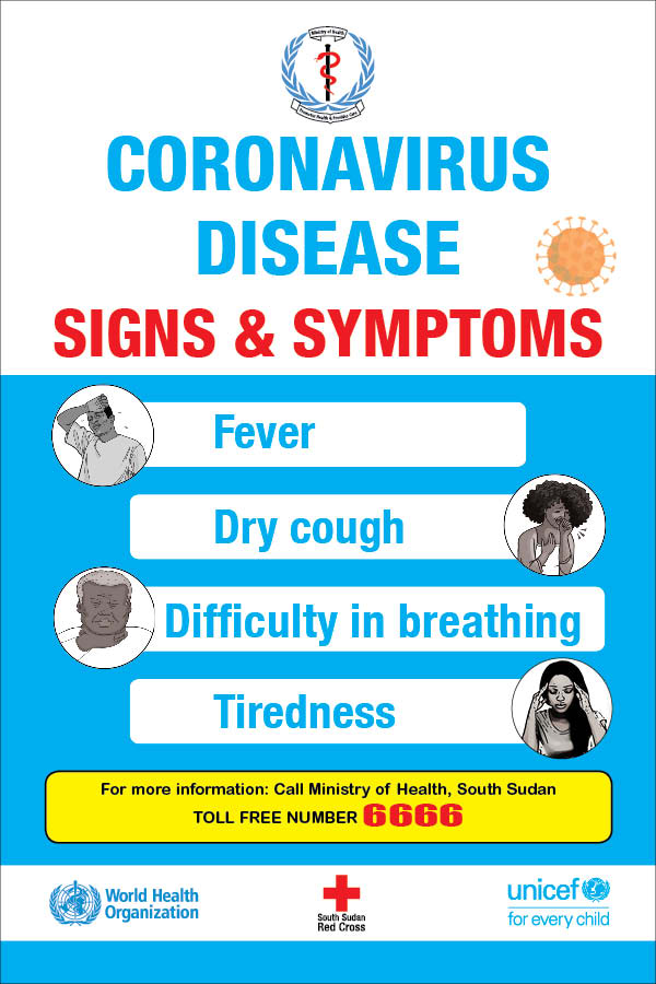 South Sudan: COVID-19 Signs & Symptoms poster