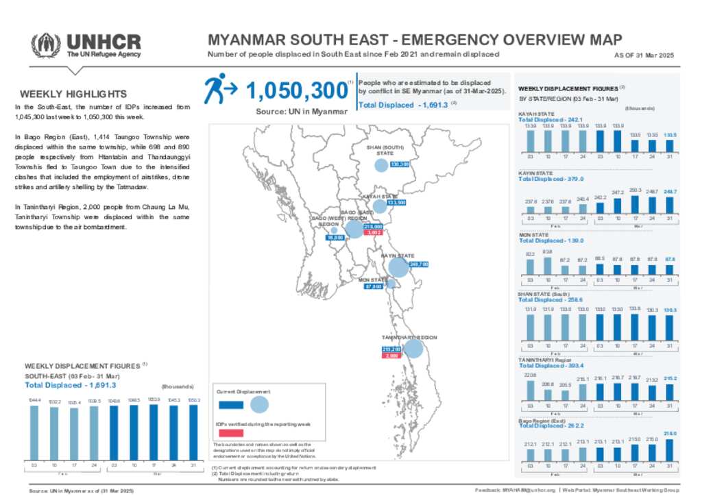 South East Myanmar UNHCR Displacement Overview 31 Mar 2025