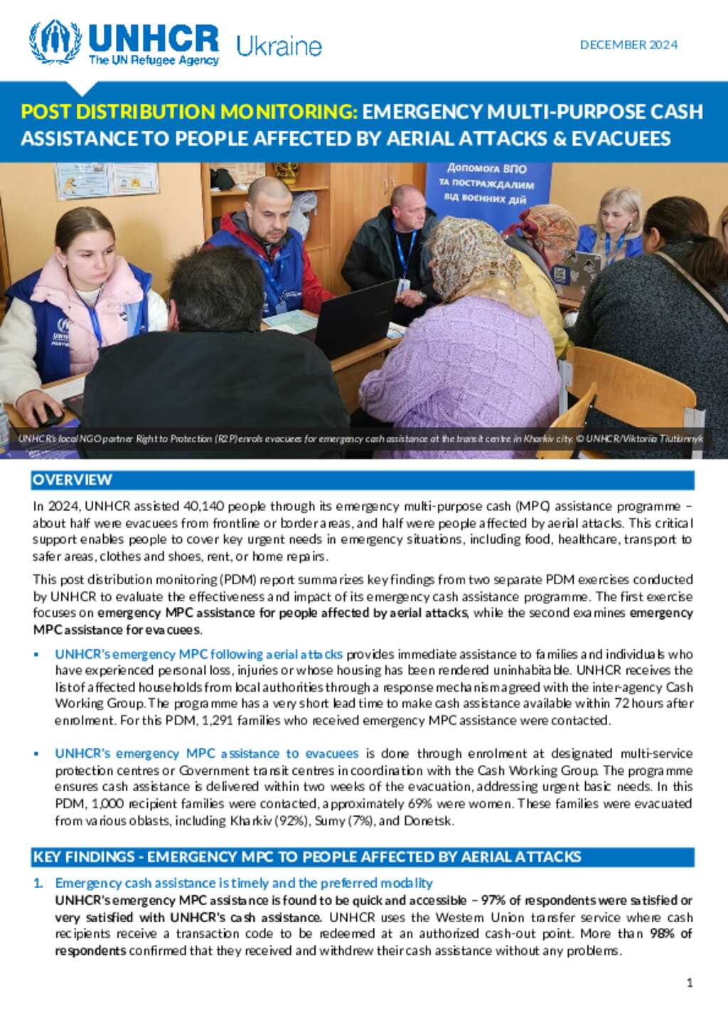 UNHCR Ukraine Post Distribution Monitoring: Emergency Multi-purpose Cash Assistance