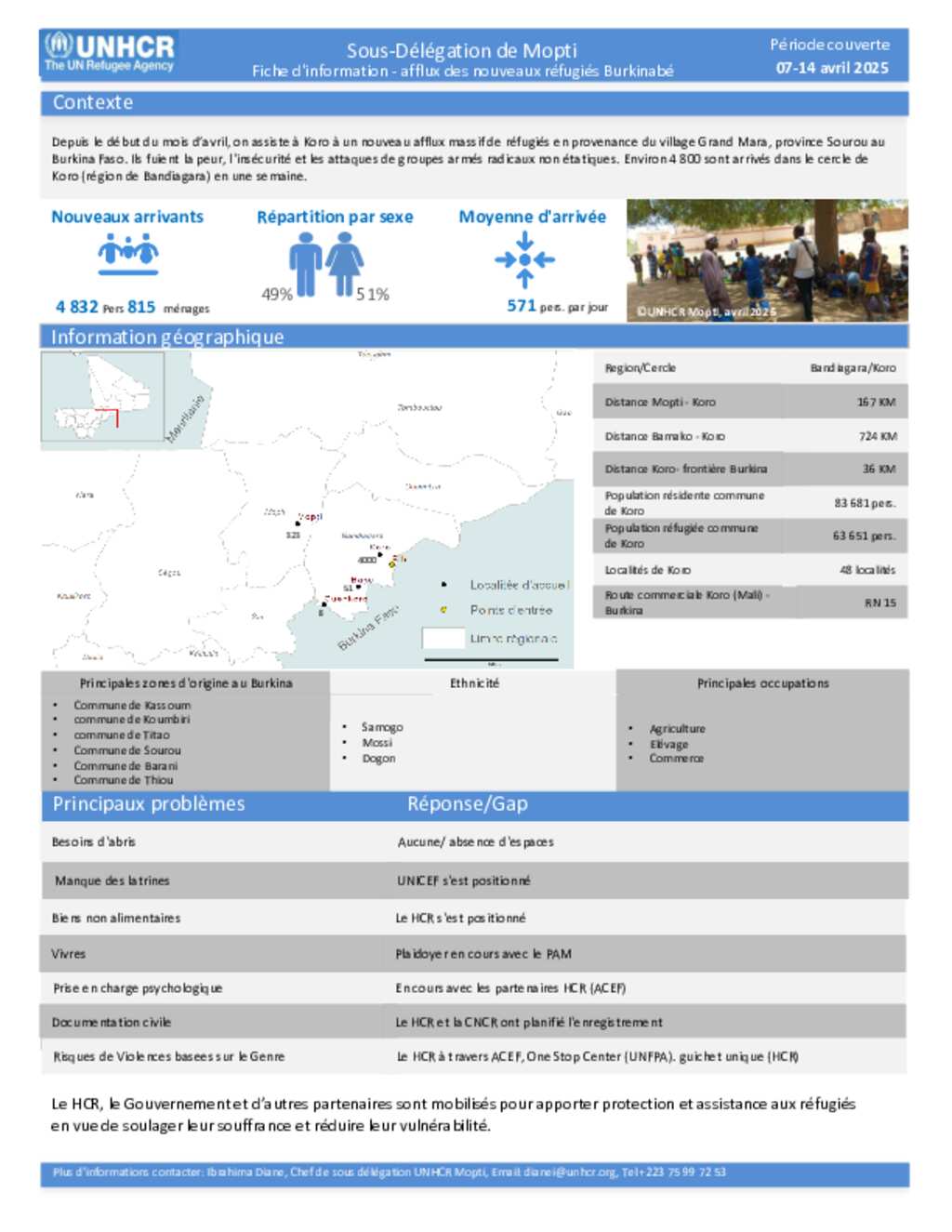 UNHCR Mali Fiche d'information - afflux des nouveaux réfugiés Burkinabé