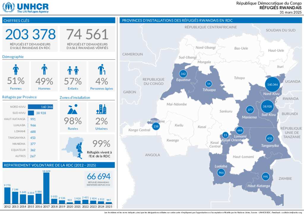 Situation des réfugiés rwandais en RDC au 31 mars 2025