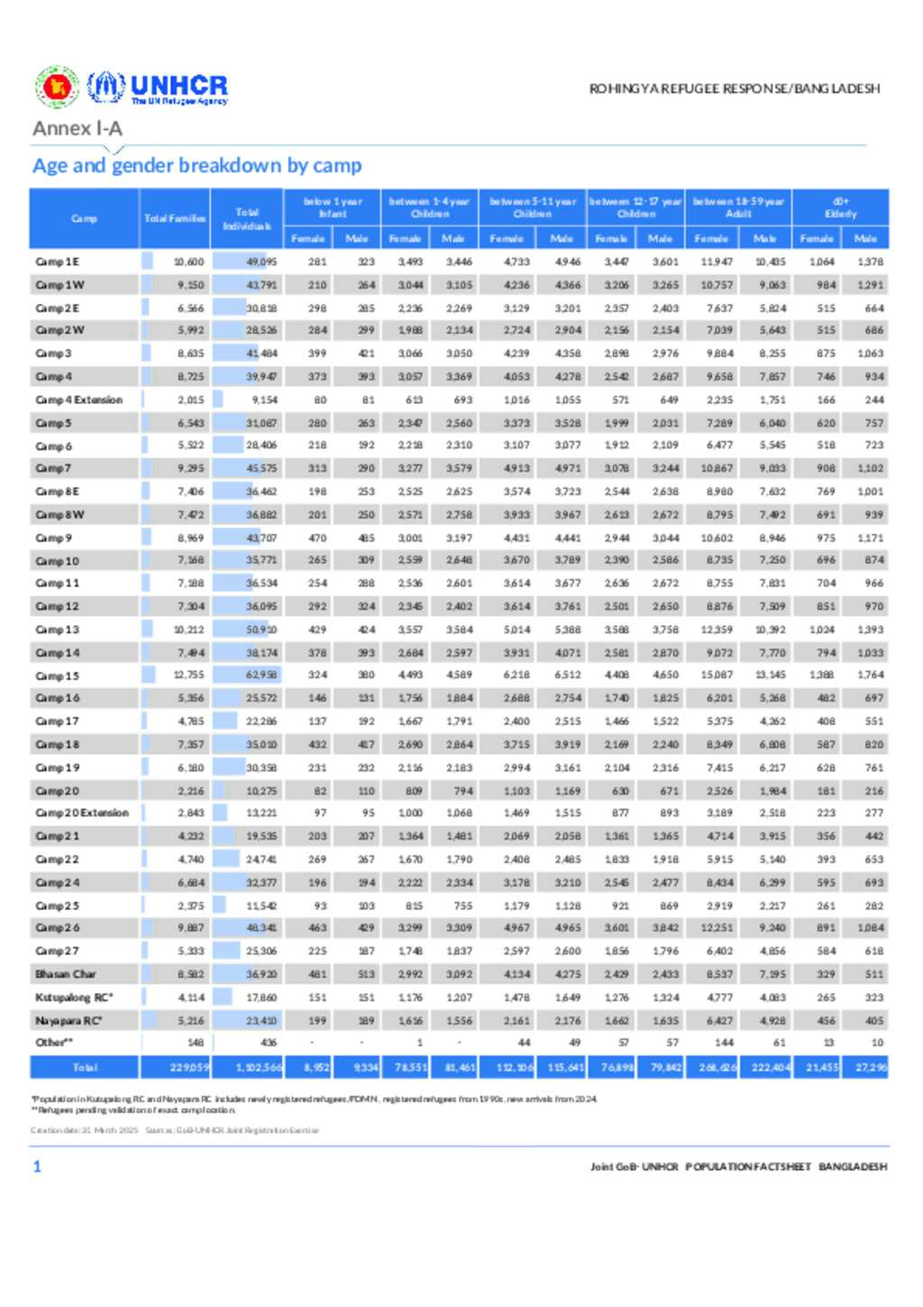 Joint Government of Bangladesh - Population breakdown as of March 2025