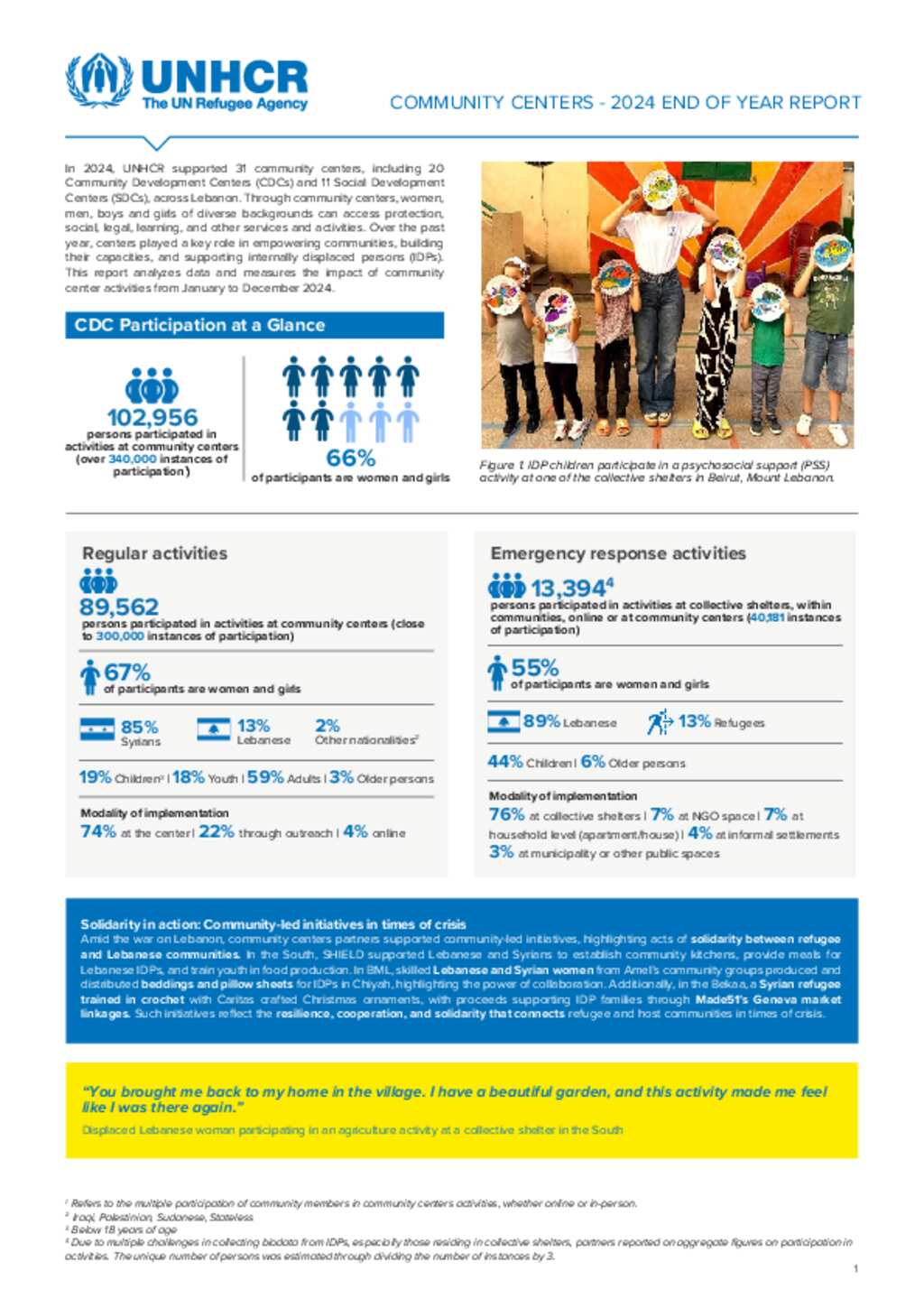 UNHCR Lebanon - Final 2024 Community Center End of Year Report