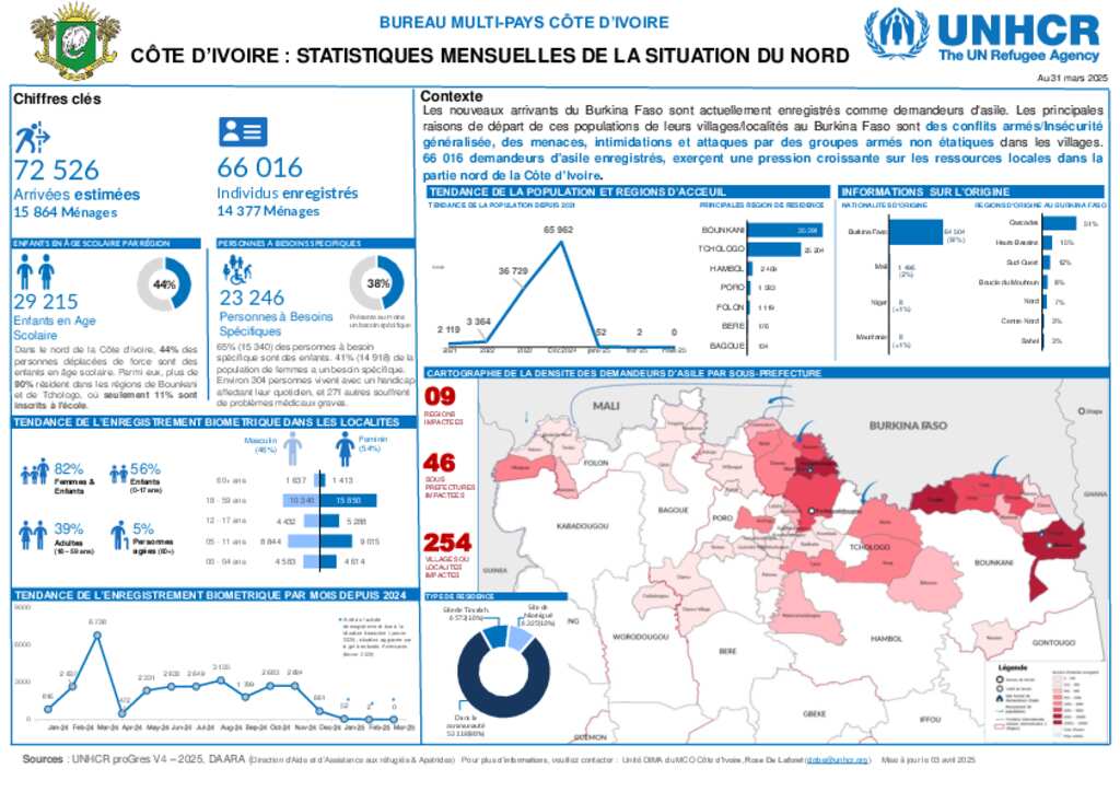 UNHCR Côte d'Ivoire - Dashboard Situation du Nord 31 mars 2025