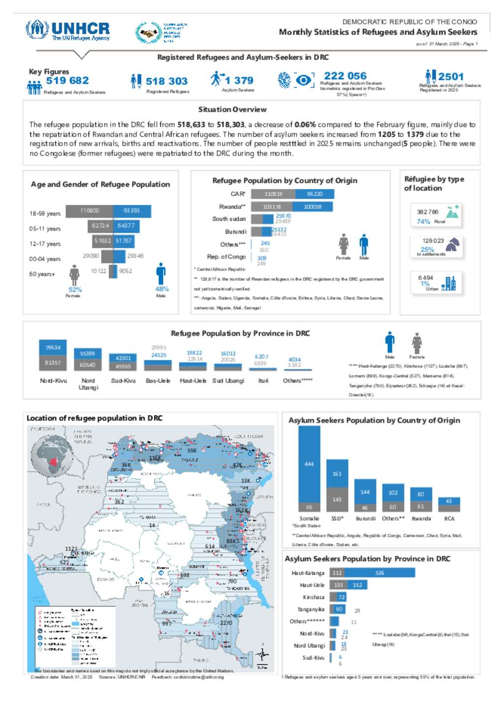 Democratic Republic of the Congo - Monthly Statistics of Refugees and Asylum Seekers - 31 March 2025
