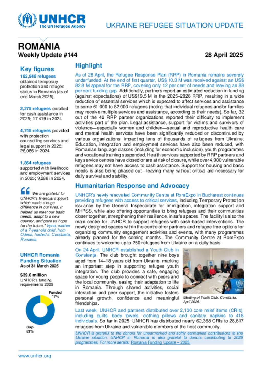 UNHCR Romania_Ukraine Refugee Situation Update_ 28 April 2025
