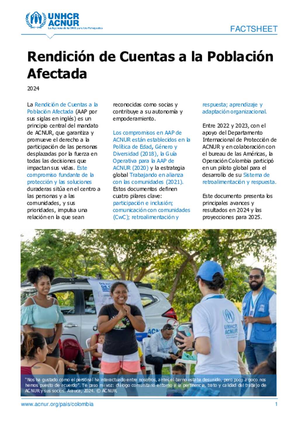 Este documento presenta los principales avances y resultados de la estrategia de Rendición de Cuentas a la Población Afectada (AAP por sus siglas en Inglés) de ACNUR en 2024 y las proyecciones para 2025.