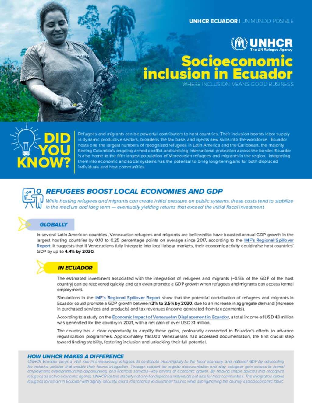 Factsheet that highlights the most important results in Ecuador regarding socioeconomic inclusion.