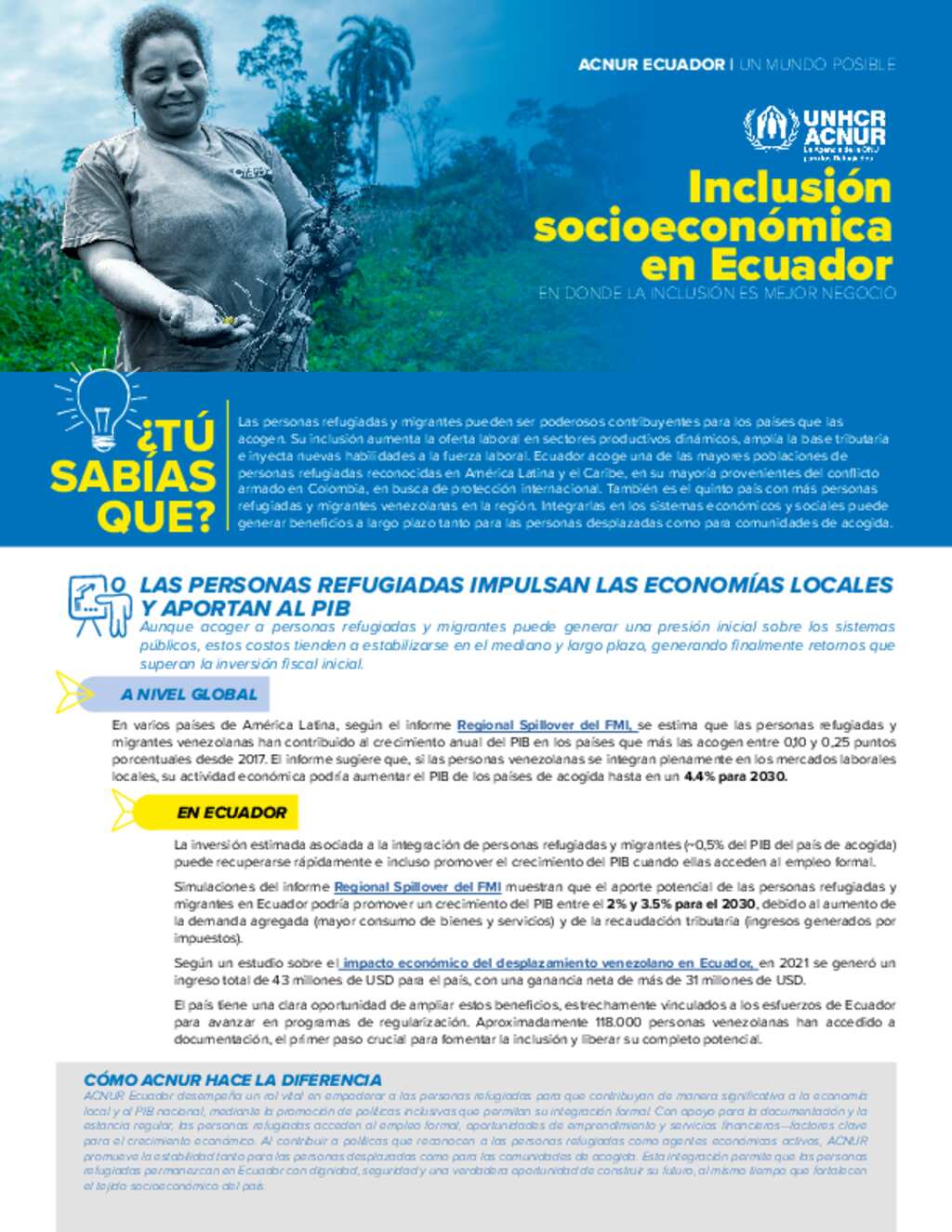 ACNUR Ecuador: Inclusión socioeconomica en Ecuador