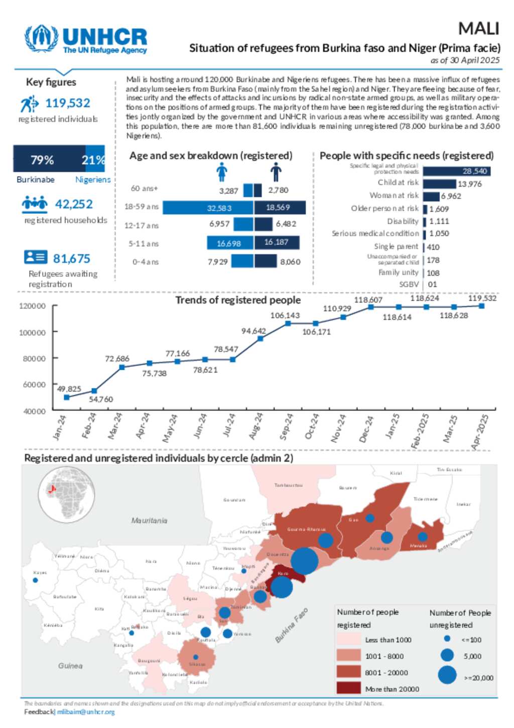 UNHCR Mali: Situation of refugees from Burkina faso and Niger as of April 2025
