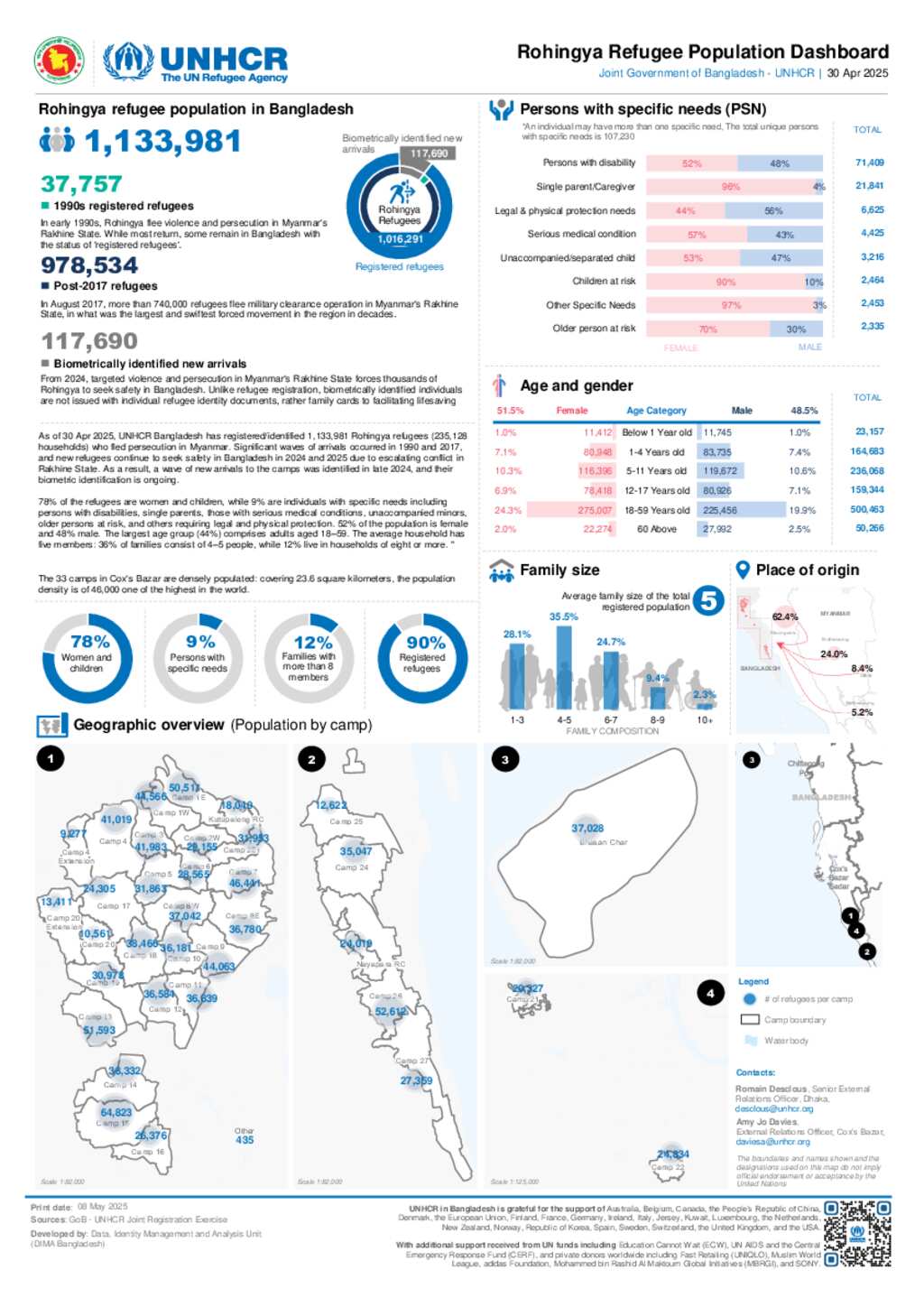 Joint Government of Bangladesh - UNHCR Population Dashboard as of April 2025