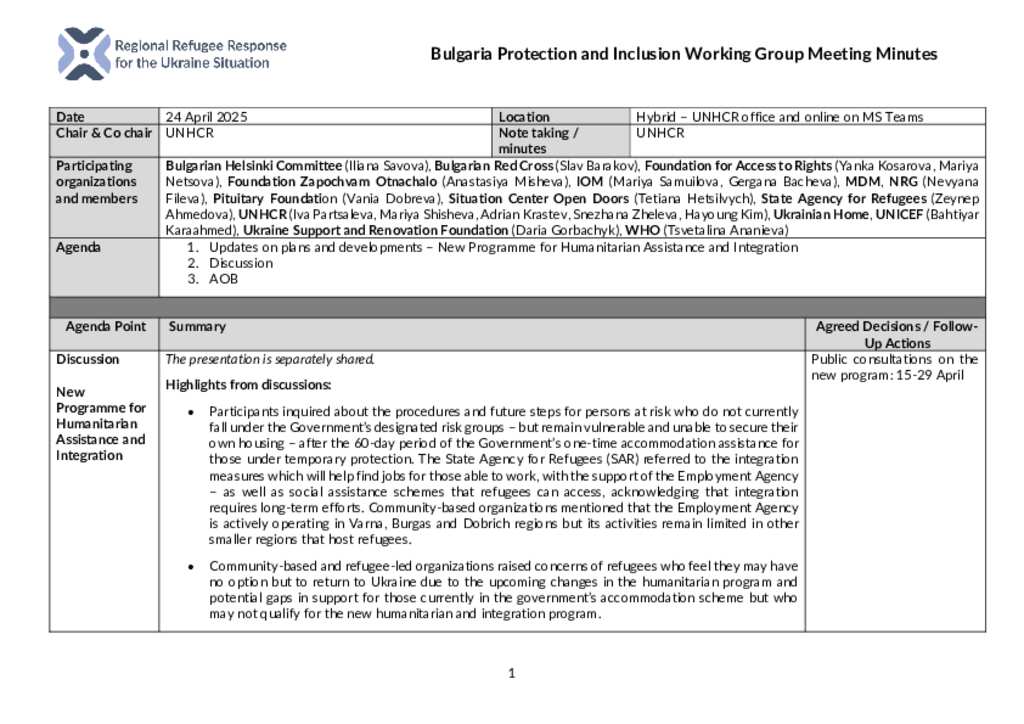 Bulgaria - PIWG Meeting Minutes - 24/04/2025