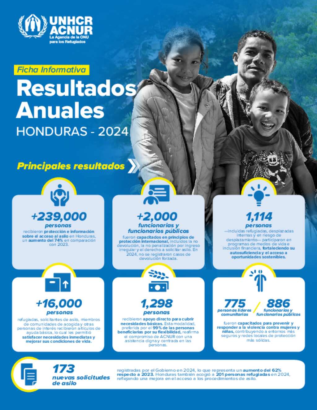 Ficha informativa de ACNUR Honduras sobre los resultados operacionales de 2024.