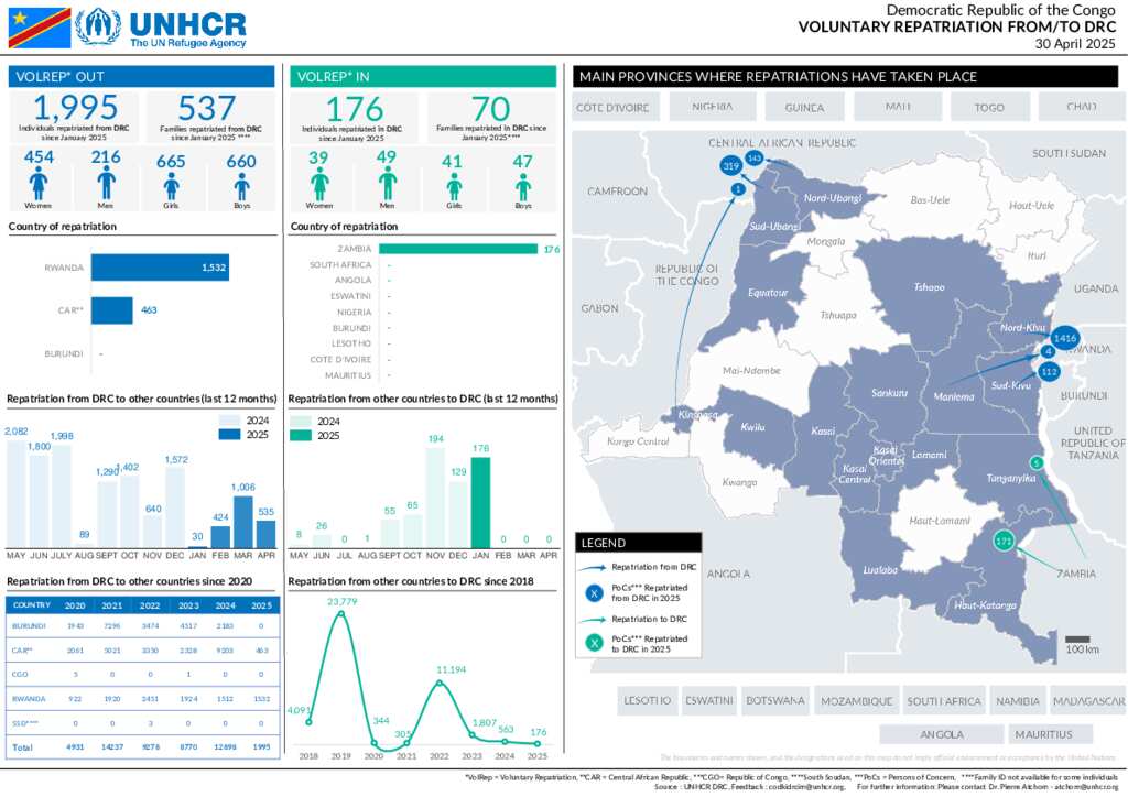 Democratic Republic of Congo - Voluntary Repatriation National Dashboard as of 30 April 2025