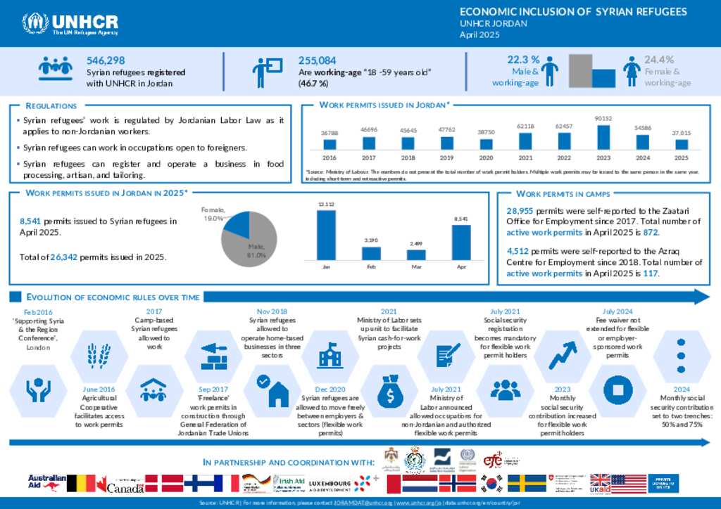 Jordan: Livelihoods Dashboard (ECONOMIC INCLUSION OF SYRIAN REFUGEES) for April 2025
