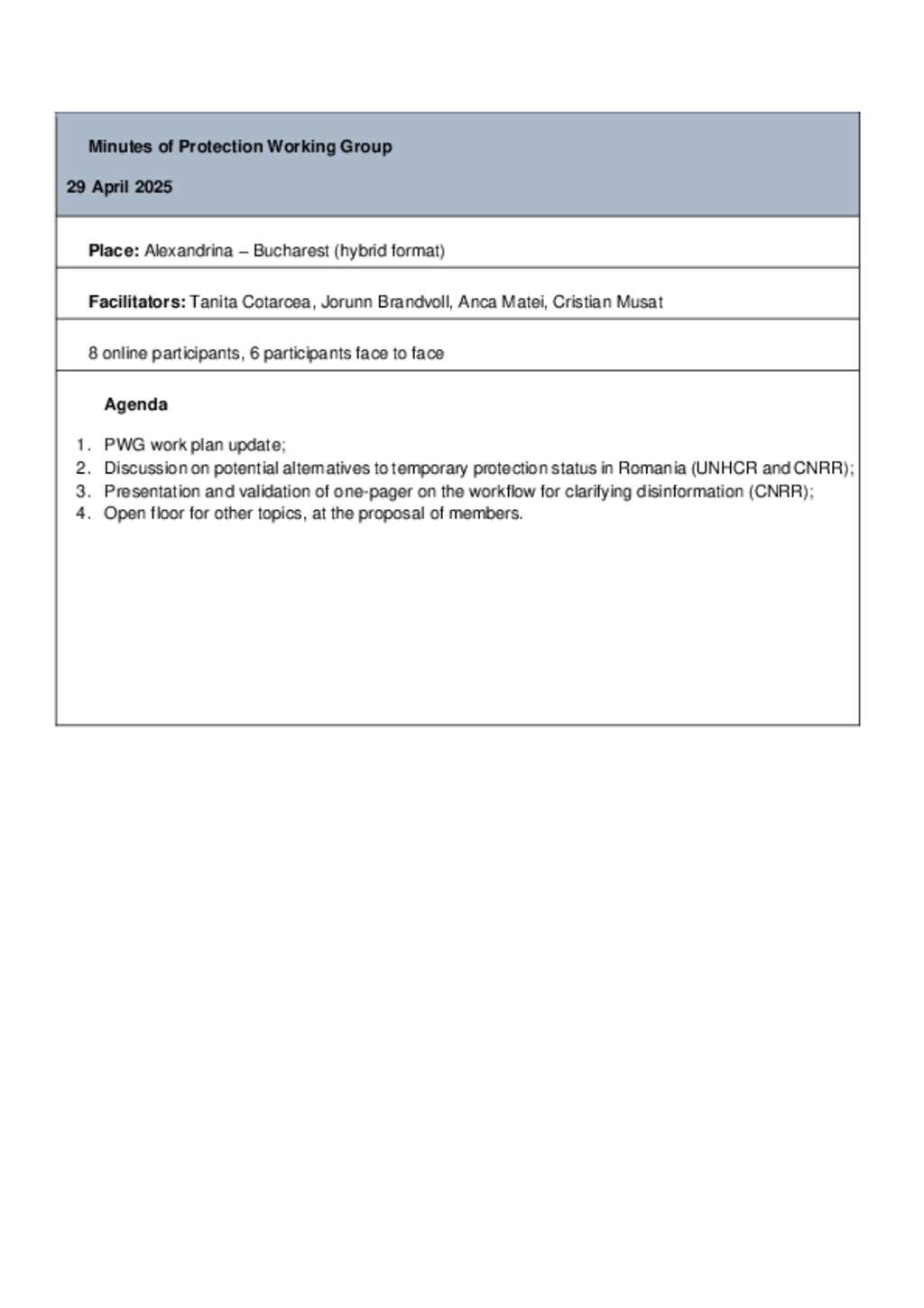 Protection Working Group minutes - 29 April 2025