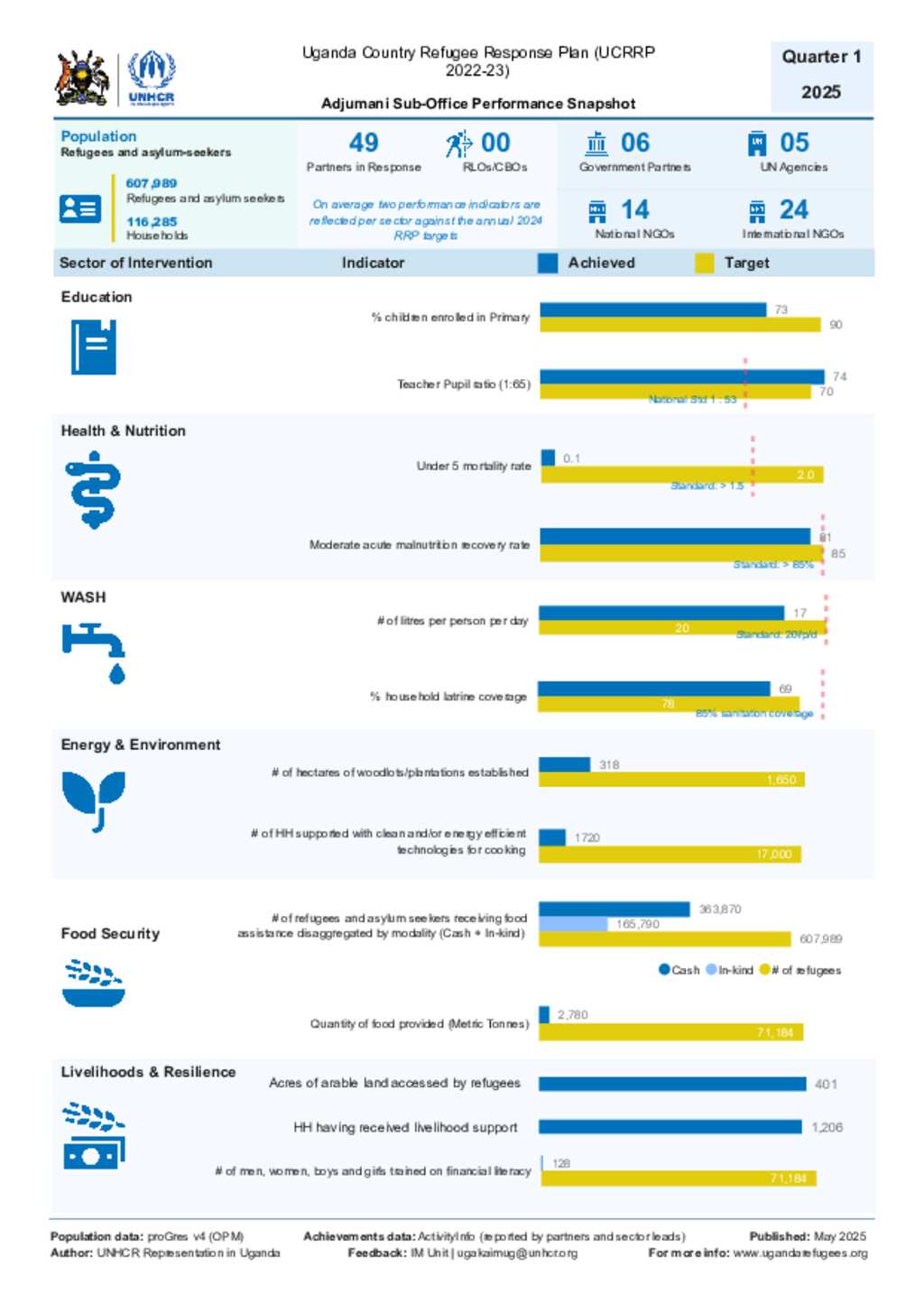 Uganda Refugee Response: Adjumani Sub-Office Q1 2025 UCRRP Settlement Performance Snapshot