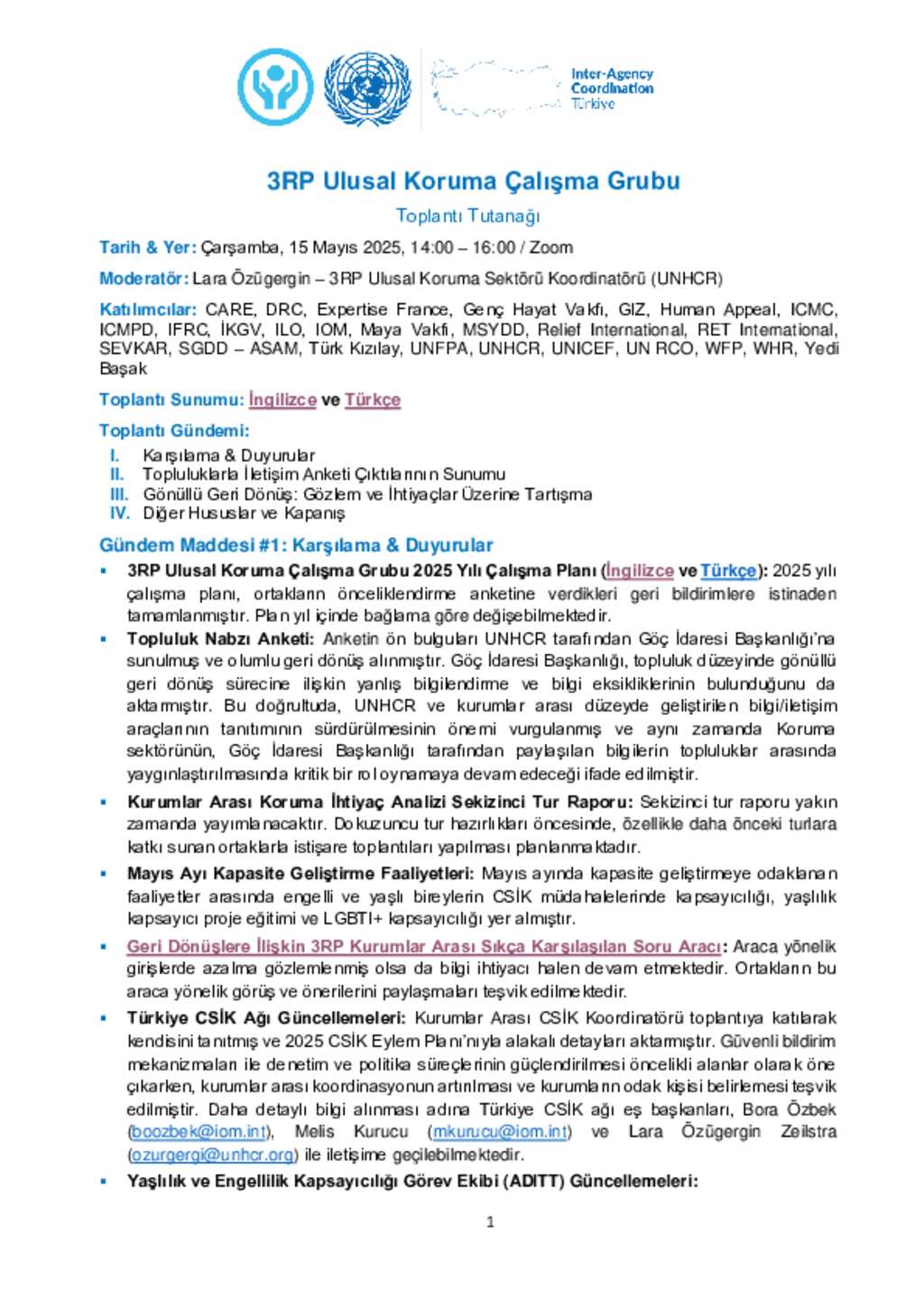 Türkiye: 3RP Ulusal Koruma Çalışma Grubu - Toplantı Tutanakları (Mayıs 2025)