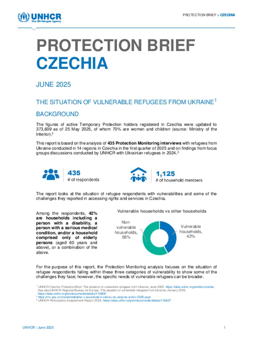 Protection Monitoring provides insights into the profiles, displacement patterns, protection risks, priority needs, and intentions of Ukrainian refugees in the Czech Republic. Data is collected quarterly, with 400 interviews per wave. The data collection aims to identify trends in the protection environment and track their development over time. It informs national and regional protection advocacy, planning, and resource allocation by providing timely, evidence-based information on refugees’ needs, access to basic services, and their intentions. The findings are indicative rather than statistically representative due to the non-probabilistic nature of the sample. However, the sample size was designed to ensure sufficient diversity and coverage for an evidence-based understanding of key trends and needs among TP holders. The sampling method was purposive but included pre-defined quotas for gender and region of residence, aligned with data from the Ministry of Interior.